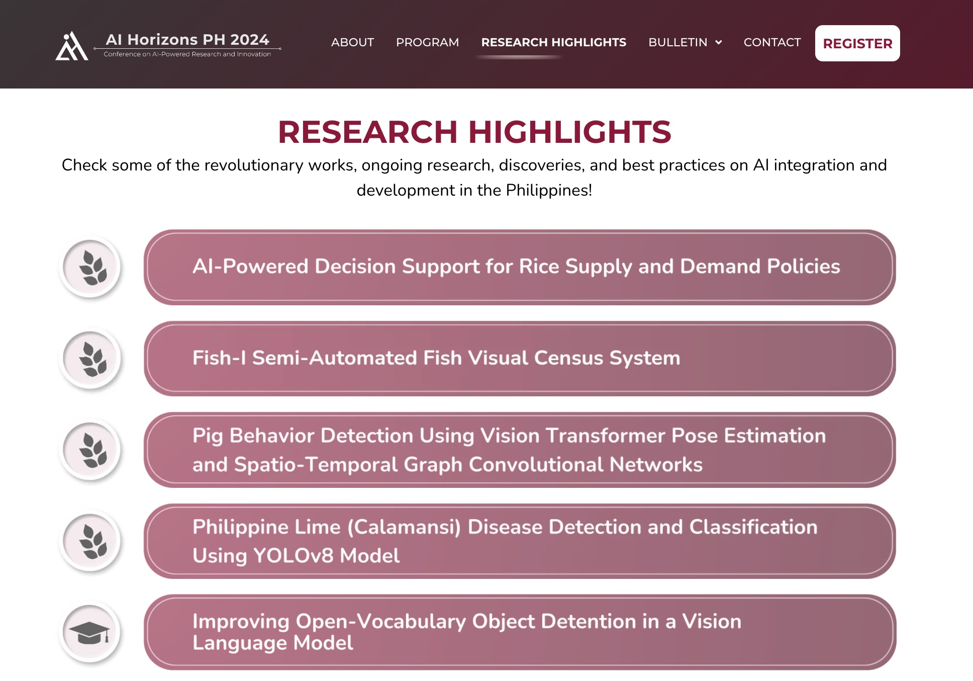 We can now envision a future where the Philippines provides all its citizens with their basic necessities, such as food, healthcare, education, and a comfortable life, using AI. In this potential future, there would be: improved agricultural yields and food accessibility; timely and innovative healthcare; cutting-edge educational tools; efficient government services guided by accurate data; and enhanced industrial outputs for businesses thriving in an internet-connected and sustainable society. All these are crucial to achieving national development while positioning the country as a leader in AI innovations in Southeast Asia.
